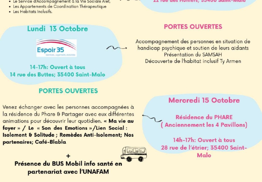 À l’occasion des Semaines d’Information sur la Santé Mentale (SISM), qui se déroulent cette année du 10 au 18 octobre 2025, le Conseil Local de Santé Mentale (CLSM) du Pays de Saint-Malo et ses partenaires du territoire se mobilisent pour proposer une série d’événements ouverts à toutes et à tous.